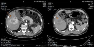 肝動脈灌注化療 63歲男肝腫瘤縮小