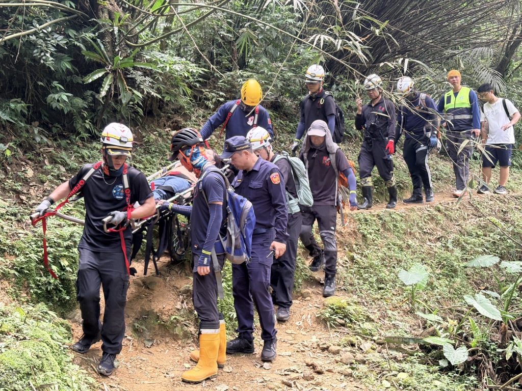 瑞芳警分局提到,經警消救援人員沿步道持續搜尋,於12時25分許接觸迷途受傷民眾王女(49年次)。經救護人員現場評估,王女右腳踝傷勢嚴重,已無法自行行走。因山區步道路徑狹窄,部分路段坡陡濕滑,增加搬運及救援困難,救援人員遂以擔架接力方式,合力將傷者安全護送下山,後續送往瑞芳礦工醫院就醫。