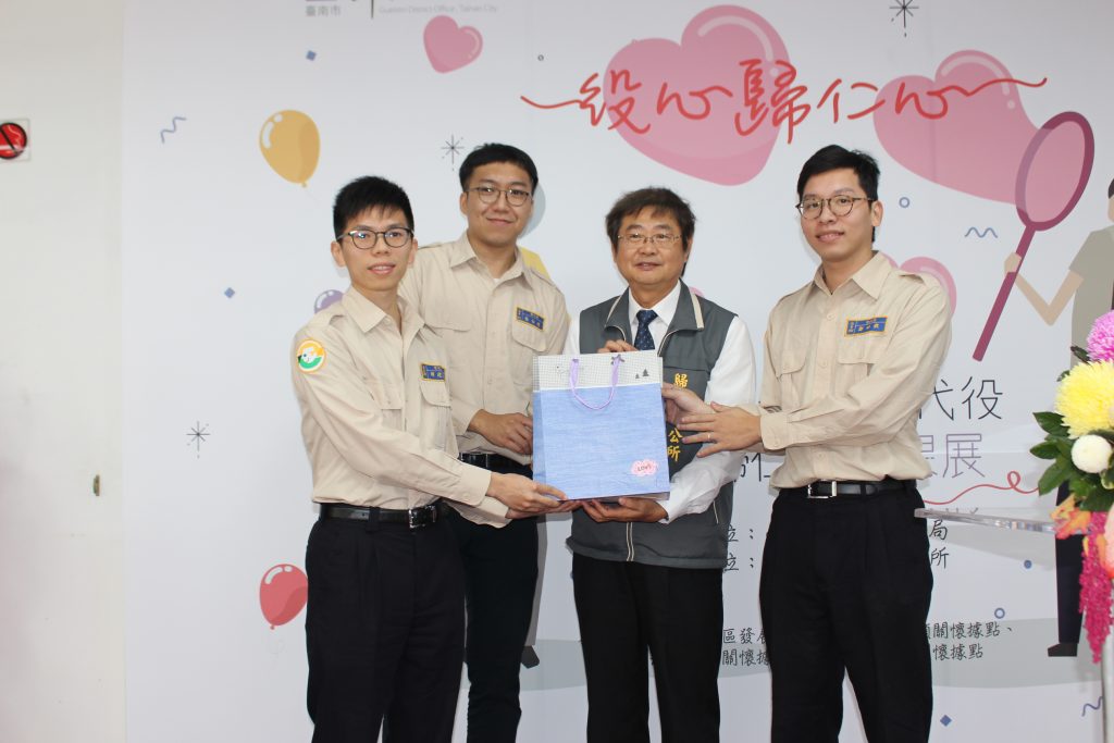 歸仁區公所三名長照替代役男將自身的醫學專業投入社區照顧關懷據點,不只教社區長者做體操,讓老人健康又開心,更將醫院及學校提供的資源帶入長照據點,增強據點的能量。三人近日即將退伍,歸仁區公所十六日舉辦成果展,頒獎感謝三位替代役男的熱心服務和無私奉獻