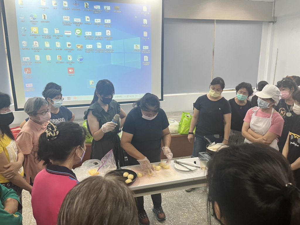 除了心靈課程外,市農會還特別邀請了手藝極好的堉創食堂負責人李堉碩,現場指導大家手作照燒雞腿堡等冷藏麵包,現場學員認真的揉著麵糰,隨即也處理著漢堡裡將放置的食材,有起司和雞腿肉等,學員們邊做已邊食指大動了。李堉碩表示,如此的漢堡可當做冷藏麵包,先冷藏著,想食的時候即可食用。