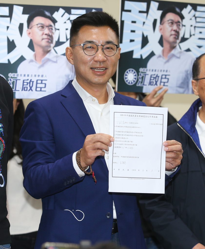 國民黨主席補選三日開放登記,立委江啟臣上午繳交繳交三萬四千七百八十二份連署,率先完成登記;至於孫文學校總校長張亞中雖最先到達中央黨部,但不符登記資格,他也當場抗議參選制度不公。