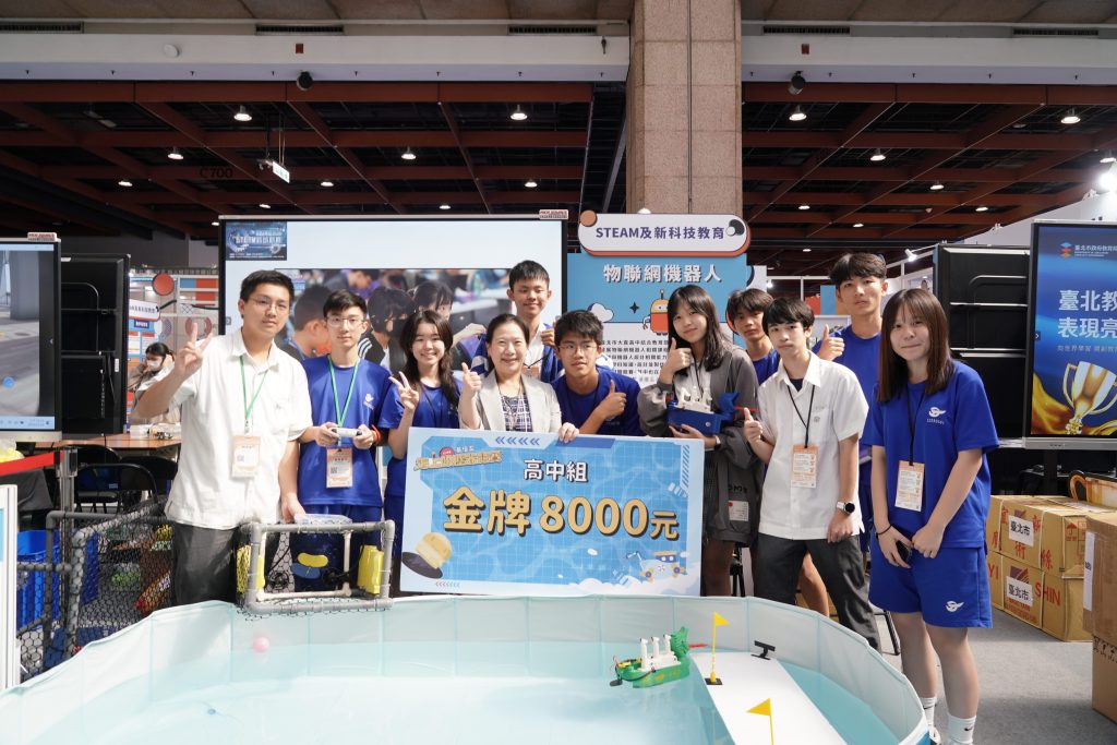 此次參展還包含各校多元亮點,其中,大直高中展示「海上吸塵器」,學生在教師帶領下製作出可模擬打撈漂浮廢棄物的船隻,這艘海上吸塵器具備無線網絡遠端操控功能,能依網子的疏密程度蒐集不同類型垃圾,大直高中學生也藉此呼籲民眾減少使用一次性、不可重複利用的餐具,從源頭減少廢棄物,為環境減負。
