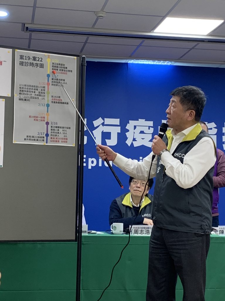 疫情指揮中心指揮官陳時中表示,針對首例武漢肺炎死亡個案的接觸者,衛生單位於十六日進行疫調時發現,司機的母親曾於二月六日出現症狀就醫,另外甥女婿則於一月二十八日至二月六日間出現發燒、咳嗽等症狀,兩人經採檢均於十七日確診。