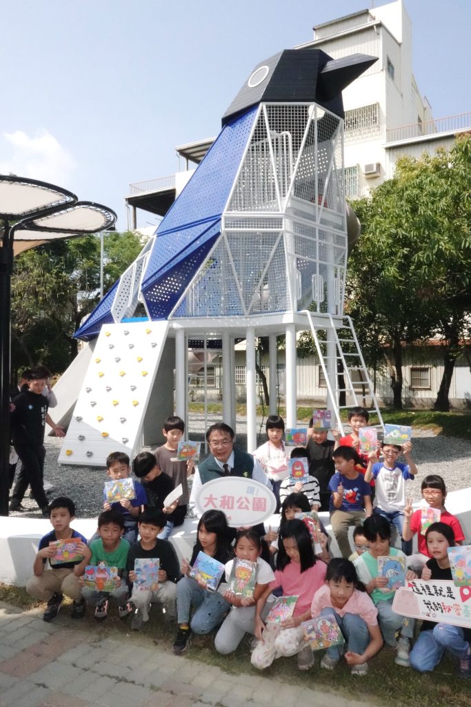 「大和公園特色遊戲場」以台南在地常見、象徵幸福及吉祥的「喜鵲」為主題造型,主體是一座高達七米的喜鵲造型超高溜滑梯,並搭配三組不同功能攀爬設施,還可以攀岩,可在遊戲中培養孩子們手腳協調及探索能力,站在中華北路一段旁,遠遠就可看見大和里活動中心旁的高大喜鵲,歡迎家長帶五至十二歲小朋友前來探索。