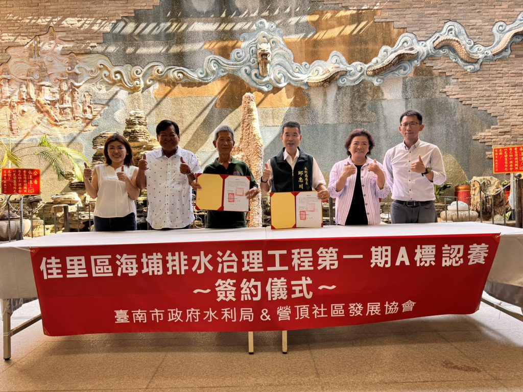 推動護水永續行動走入社區,水利局就海埔排水治理工程第一期A標,與營頂社區發展協會簽訂認養意向書,期盼公私協力攜手共同打造安全、優質水環境。