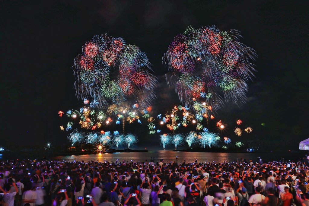 將軍吼現場施放璀燦煙火,搭配音樂,交織出精彩饗宴。(市府提供)