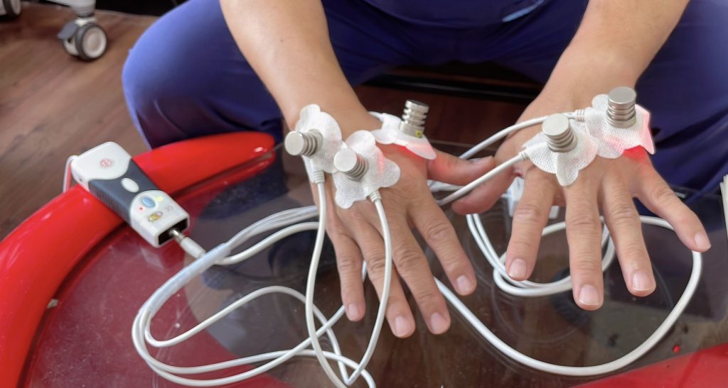 新營醫院復健科主任倪昊白指出,靜脈雷射治療不僅適用於改善中風恢復期的血液循環問題,還能有效緩解失眠、眩暈、氣喘及濕疹症狀。此外,透過活化細胞的修復與再生過程,顯著促進傷口癒合並具抗老化效果。治療方式除傳統經由靜脈導管施行的ILIB外,醫院引進經皮式靜脈雷射治療(OLIB),以非侵入性技術降低感染風險與治療不適,提升患者接受度。治療流程建議以每日約60分鐘為單位,連續10日完成1個療程,並建議患者持續接受3個療程,療程間隔約兩週,以達到最佳療效。