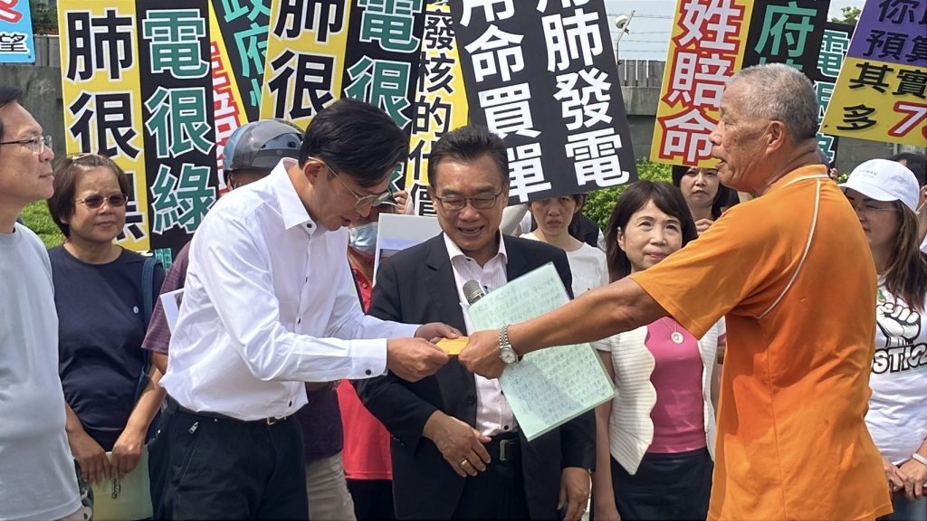 黃國昌率隊至興達電廠考察,數十名支持者、烏林投居民自救會等也至現場舉牌抗議。自救會成員表示,堅決反對台電興達電廠燃煤機組再啟動,新建電廠天然氣大爆炸應全面停工。