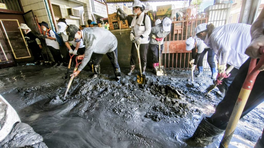 慈大校長劉怡均表示,踏入災區才發現,至今仍有不少住家淤泥仍高達五十公分,相當於成人膝蓋高度。淤泥卡在狹窄空間、泥濘難清,外加天氣悶熱潮濕,慈大師生只能輪番入內清掃。