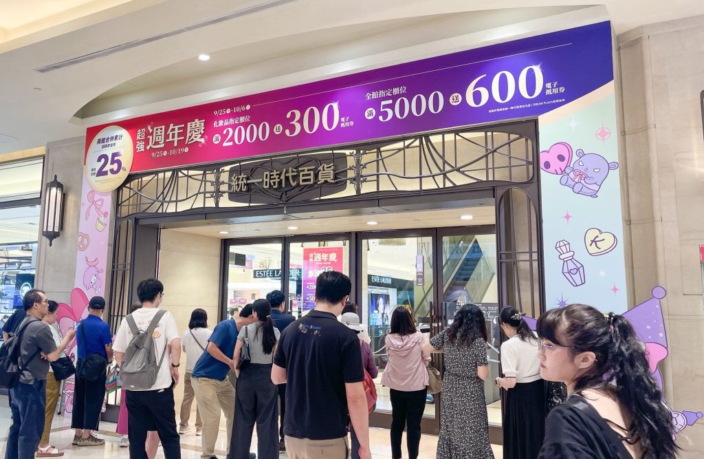 統一時代百貨台北店、DREAM PLAZA 2025「超強週年慶」25日開打,遇教師節連假百貨血拼人潮大增!統一時代百貨台北店、DREAM PLAZA表示今年推出業界超有感回饋,化妝品滿2000就送300,全館指定滿5000送600,家電滿5000送500,首5日搭配icash Pay綁定統一時代聯名卡或uniopen聯名卡加碼活動,回饋最高達25%,且兩館可合併累計!再加上夢幻可愛《美樂蒂&酷洛米》限量卡友禮的搶換風潮,更帶動今年週年慶消費熱潮,每天樓面都湧現滿滿購物人潮,首5日整體人潮較去年成長三成。