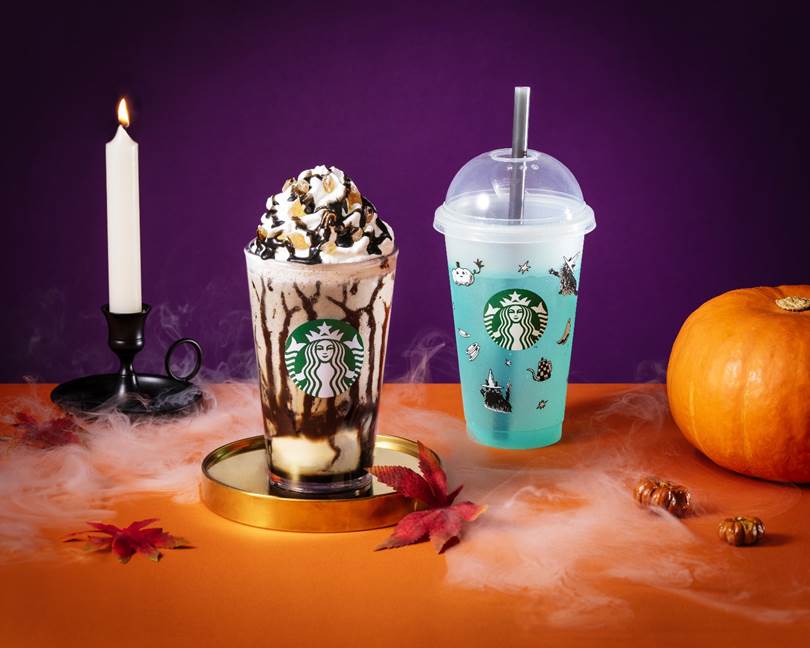 迎接歡樂萬聖節,推出萬聖節驚喜套餐組,凡購買特大杯夜幕狂想曲星冰樂搭配20oz萬聖冷變TOGO冷水杯,即可享有組合套餐優惠價400元。冰涼飲品入口的同時,杯身隨冷度幻化色彩,像極了萬聖夜裡的神秘魔咒,開啟專屬你的暗夜狂想。