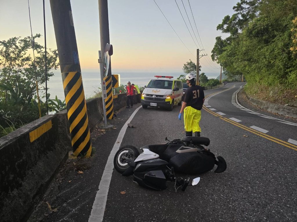 宜蘭縣南澳鄉台九丁線三十七點一公里處,三十日凌晨四時許發生疑似機車自撞護欄事故。警方獲報趕抵現場時,發現路邊遺留一頂安全帽及一雙布鞋,但未見騎士蹤影。由於事發地點為山區彎道路段,且緊鄰海邊懸崖,警方不排除騎士可能墜落崖下。