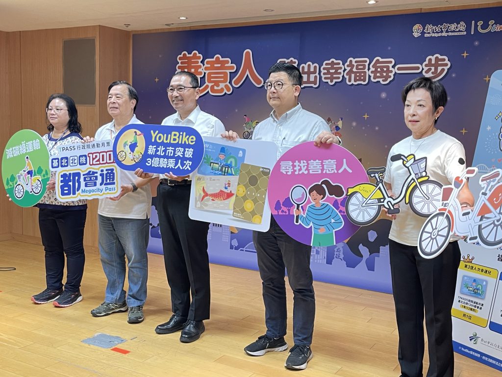 為歡慶新北市YouBike即將突破三億騎乘人次,交通局推出#尋找善意人系列活動,第三億名幸運兒可獲相當一年十二個月份的TPASS基北北桃一二00公共運輸定期票,前、後各十一名也能夠三至六份;另外自十月一日至二十日止的「善意預言家」預測達標日期活動,準確命中第三億人次達標日期者,有機會獲得新北捷運安坑小資卡,還有「善意祝福牆」留言抽獎活動。