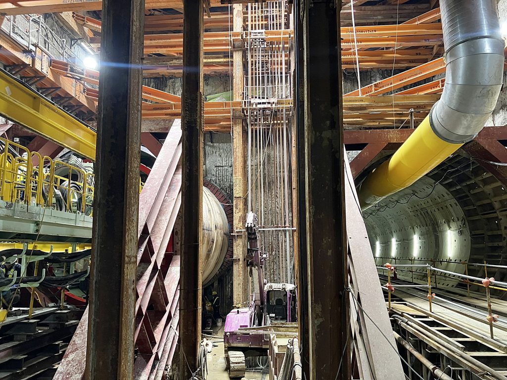 捷運工程局表示,此次發進的潛盾機,將在地底下二十公尺掘進,並與今年八月發進在地底下三十公尺掘進的潛盾機,將以上下疊式的方式穿越國道二號下方直接基礎結構。