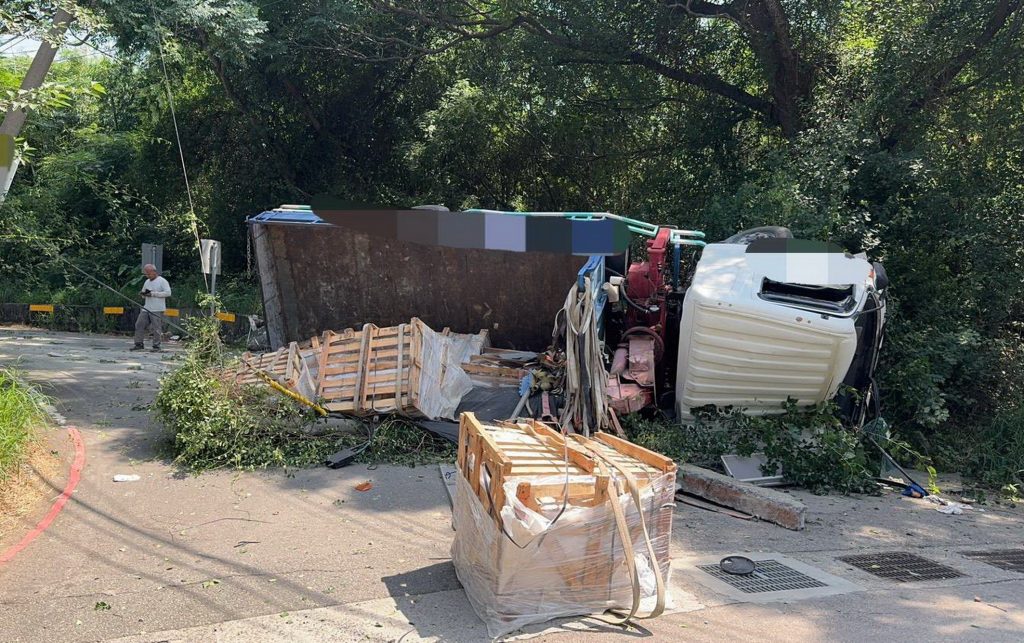 清水警分局表示,這起事故發生在昨日中午十二時十五分左右,莊姓男子駕駛由大貨車行至沙鹿區東晉東路與晉文路二二九巷口,突然撞上右側路旁電桿後翻倒,所幸駕駛自行脫困,未受傷,現場已進行拖吊作業中,警方也加派警力於前方路口指揮管制,避免受阻。
