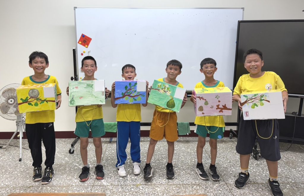 校長陳宏吉表示,食農教育在青農李育儒協助下,這次以文旦紙箱設計為主,來自嘉義德星紙器的陳威達及杜俐誼夫婦帶來紙箱,讓學生在上面繪畫創作,並在老師李宜珊、蔡淑惠、黃綉雯、林佳燕等人指導順利完成,後續再由德星紙器加工處理,獨一無二的文旦紙箱放入文旦更顯特色。