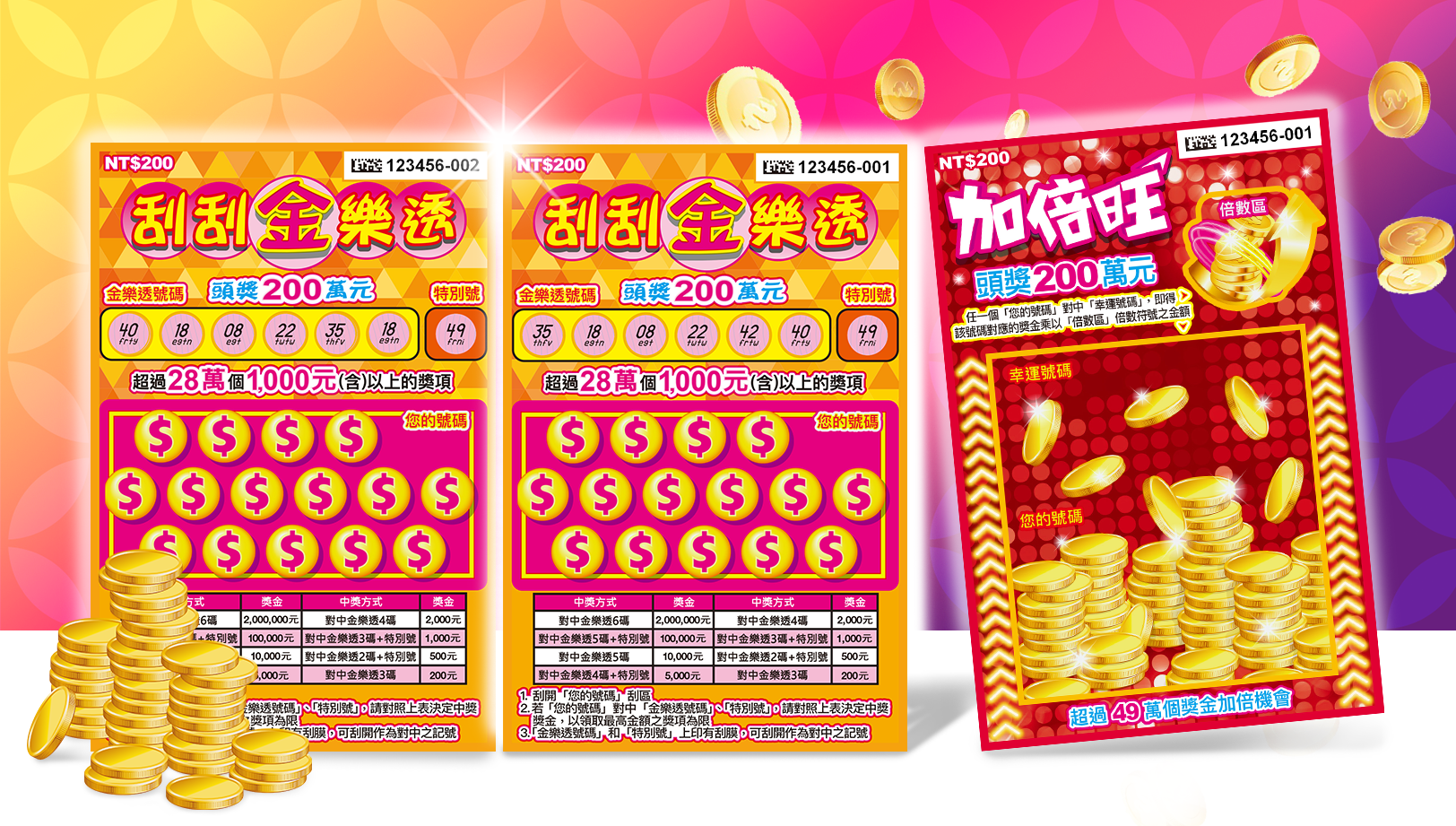 刮刮樂「刮刮金樂透」、「加倍旺」新品上市