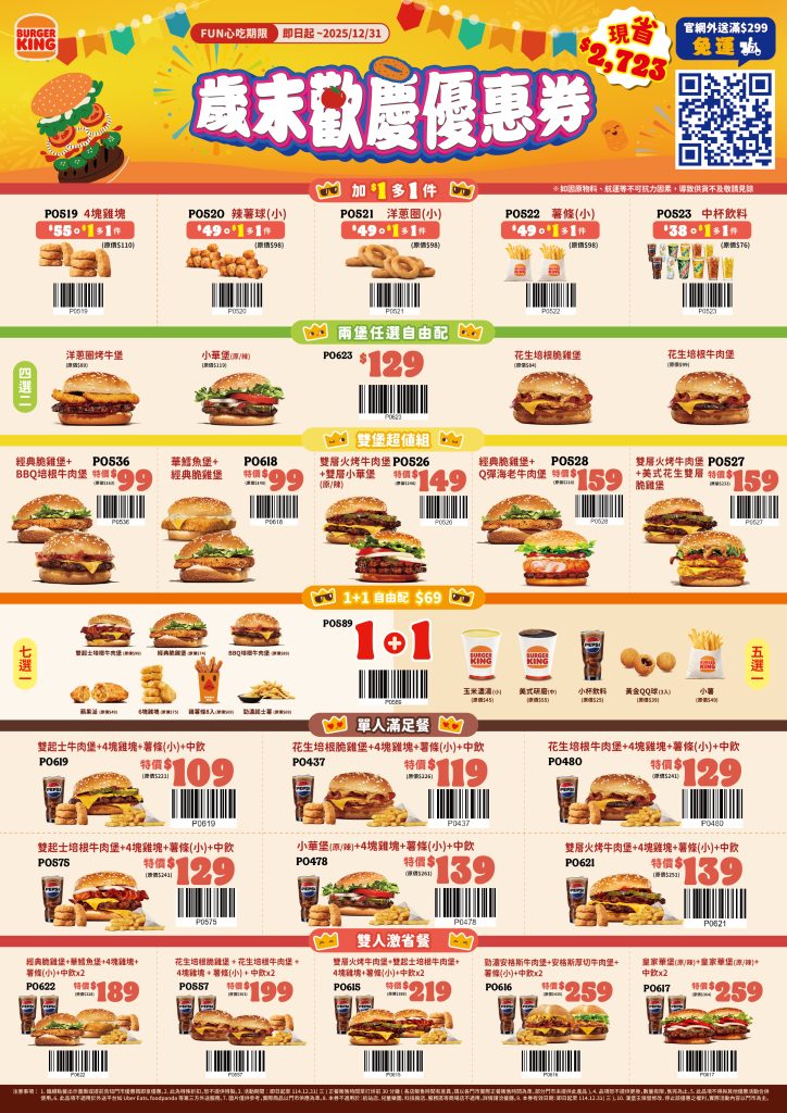 秋天來臨,漢堡王推出新一季「歲末歡慶優惠券」,自即日起適用,包括加1元多1件、69元自由配等共6大類方案,最優惠49折,全券62款優惠商品消費一次,可省2723元。另外中秋節不想大費周章準備烤肉趴,可選擇無麵包系列「中秋烤肉堡」套餐,足足16盎司的四層牛無麵包堡現省20元還送飲料;還可搭配新上市的芋頭派當餐後點心,除單點39元嘗鮮價,也可在3樣100元的超值點心組選擇。