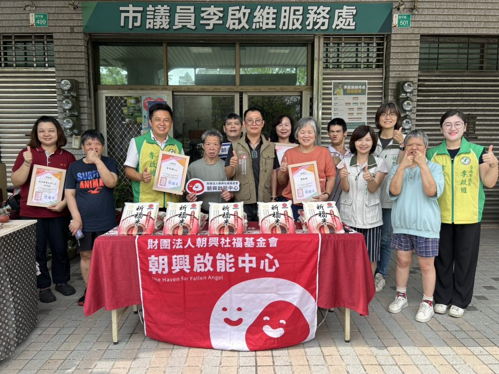中秋將屆,議員李啟維服務處結合社會各界善心人士及熱心公益企業,共同投入關懷弱勢行列,十一日捐贈七萬六千元及白米兩千零五十八公斤,協助朝興啟能中心,讓憨星人們在生活上獲得更多支持與溫暖。
