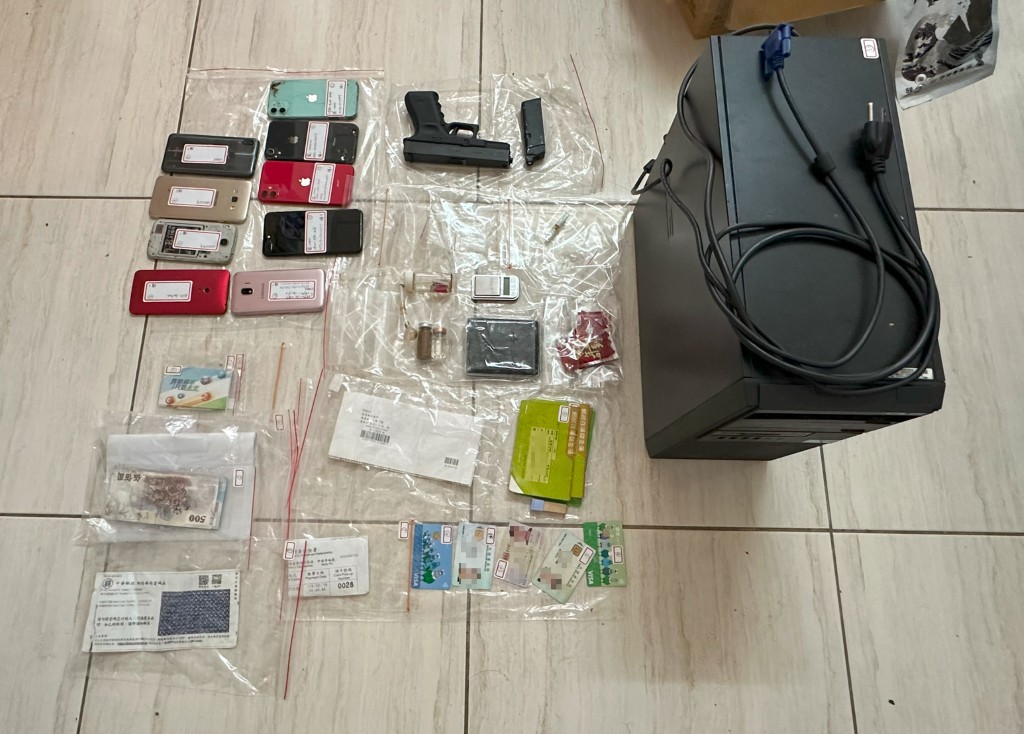 刑事警察局偵查第八大隊第一隊警方會同臺灣臺東地方檢察署、彰化地方檢察署、臺東縣警察局臺東分局、彰化縣警察局芳苑分局及桃園市政府警察局平鎮分局,歷經多月蒐證後於今年5月至8月間展開多波查緝行動,共逮捕周姓嫌犯(25歲)、陳姓嫌犯(27歲)、呂姓嫌犯(24歲)等14人到案,並查扣手機11支、電腦主機1台、SIM卡6張、郵政存簿4本、金融卡2張、人頭證件3張、玩具槍1支、毒品愷他命及贓款新臺幣1萬7800元等證物。