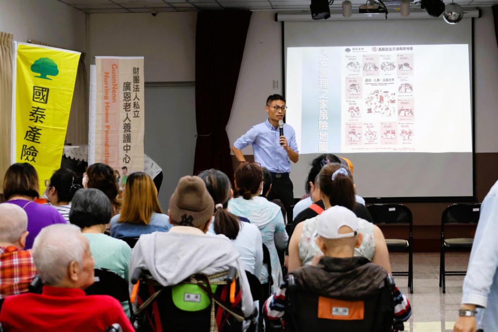 國泰產險秉持「公平待客、友善服務」精神,持續關懷高齡族群,自2023年啟動微心計畫,走入長照機構與社區推廣防災知識教育,日前攜手「同仁康拓長照社團法人」前進蘆洲「永安住宿長照機構」,繼舉辦「防災三部曲」火災篇、地震篇宣導後,這次特別推出用電安全篇並輔以交通安全預防課程,舉辦「安心生活雙講堂:安全用電不冒險,交通平安最關鍵」活動,共吸引近百位長者與照服員參與,提升長者與照護人員日常生活中的災害風險辨識與預防能力,持續將事前預防風險觀念擴散至不同鄰里社區。