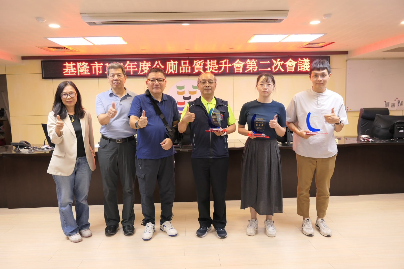截至目前,該分公司基港大樓1樓男女公廁榮獲環境部「113年我家廁所超級讚之績優公廁評比活動」交通場站類特優獎,基港大樓2樓男女公廁也獲得「114年基隆市列管公廁考評」第1名殊榮,並於114年10月2日由基隆市政府秘書長公開頒獎並由林健明主任秘書分享公廁管理經驗。