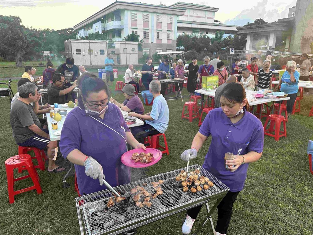 另外,中正堂前廣場則舉行熱鬧的烤肉聯誼活動,香氣四溢的烤肉串起住民長輩之間的情誼。活動特別安排安養堂住民一同在皎潔月光下烤肉,一邊享用美味餐點,一邊歡唱卡拉OK,讓大家彼此交流互動。養護堂則精心準備了烤雞、香腸與蔬菜湯等豐盛餐點,讓每位長輩都能享受美食,在溫馨的氣氛中共渡中秋佳節。