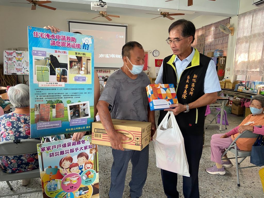 中秋節將至,新化區長李義隆二日到轄內低收獨居長者家中關懷探訪,除了提供米、麵及乾糧等民生物資,以及口罩、酒精與緊急避難背包等防災防疫用品,更結合新化區行善團的心意,致贈中秋月餅禮盒,不僅關心獨老的健康、安全,也讓長者在節慶中感受到團聚及溫馨氣氛。