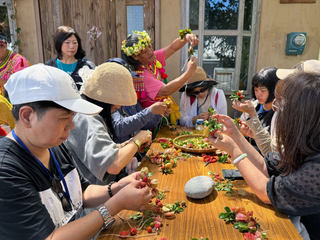 都蘭屬阿美族母系社會,女性在部落中地位相當重要,無論是務農、採集海產,或是傳承編織、料理等傳統技藝,都扮演不可或缺的角色。部落「搖滾媽媽」團隊說,製作花環象徵祝福與美好,也是一種文化傳承,期望透過教學讓年輕世代延續這份智慧。