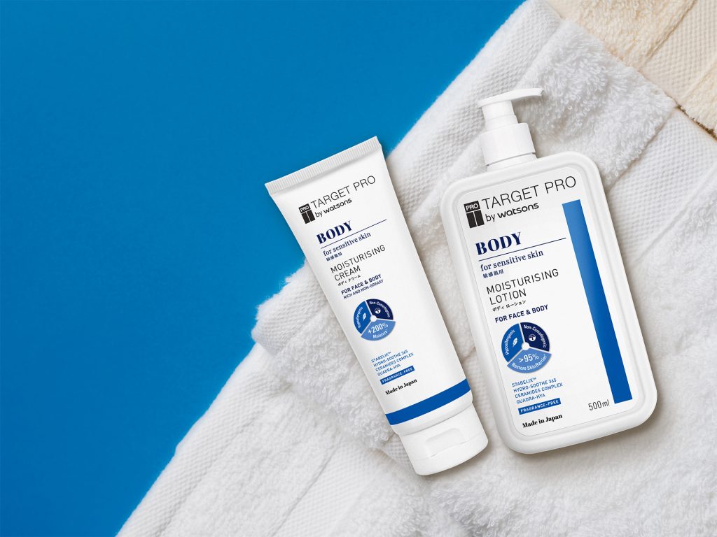 《Target Pro by Watsons肌膚專研 長效舒緩身體系列》自去年上市以來,好評不斷,今年再度升級保養體驗,全新推出《Target Pro by Watsons肌膚專研 低敏長效保濕潤膚霜》,以更滋潤的質地滿足秋冬極乾肌需求。新品延續系列四大核心成分,從修護、補水到鎖水,全方位協同作用,讓敏感肌回到穩定狀態。系列產品蘊含專利 7 重修護植萃配方(S7ABELIX™),迅速舒緩不適並穩定膚況;搭配 3 重神經醯胺強化健康屏障並提升防禦力,加上鎖水磁石(HYDRO-SOOTHE 365) 即時補水與鎖水,達到長效保濕;以及 4 重玻尿酸(QUADRA-HYA),層層滲透補水,讓肌膚由內而外飽滿澎潤。四大成分幫助修護、保濕、舒緩一次到位,為秋冬敏感肌提供全方位守護。