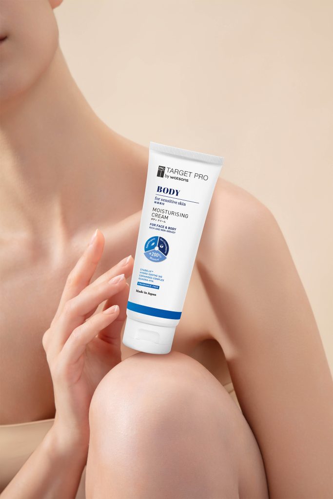 《Target_Pro_by_Watsons肌膚專研_低敏長效保濕潤膚霜》經測試證實能72小時長效保濕抵抗「肌」荒,肌膚滋潤度更提升2倍,幫助肌膚回復柔軟與彈性。