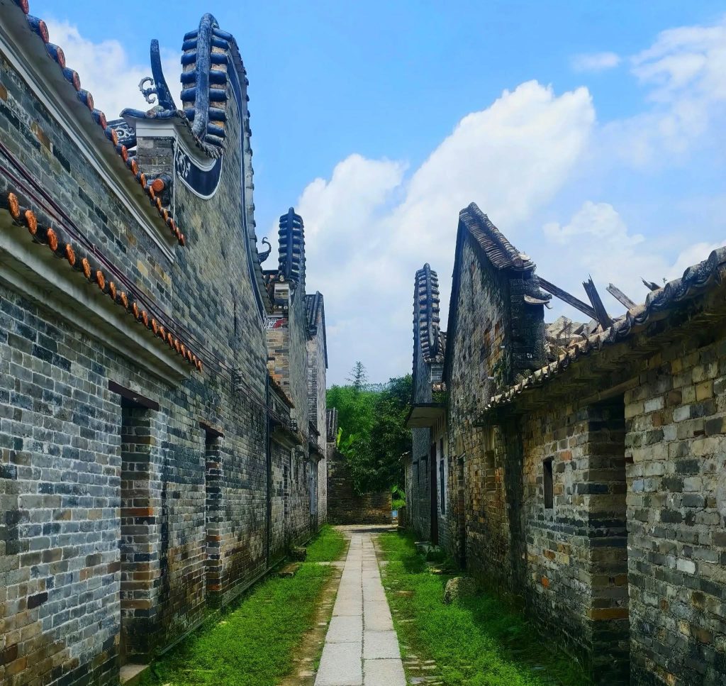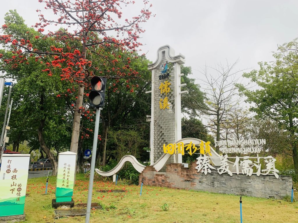 走進西樵鎮儒溪村,仿佛踏入一幅自帶色彩的水墨畫,這座被譽為「佛山市文化與旅遊特色村」的古村,綠樹紅花與青磚灰瓦相映,古榕樹、黃皮樹、龍眼樹隨處可見,村中古老的石板路蜿蜒而行,兩旁祠堂與砲樓靜靜矗立,低聲訴說著歷史的滄桑,連片魚塘與清澈水脈縱橫交錯,構築出典型的嶺南水鄉風貌。