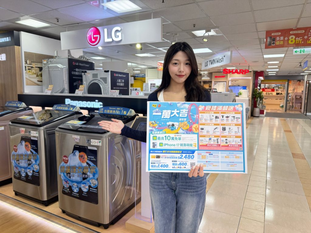 各大百貨週年慶陸續熱鬧登場,「不用等政府普發一萬元」,燦坤3C家電今年也不缺席,集結全台門市+燦坤線上購物最強商品陣容,齊力搶客拚買氣!10月4日起至10月16日推出十月最強檔「一萬大吉週年慶」活動盛大開跑,全館指定商品最低5折起,同時祭出會員有感3大專屬回饋,包含「燦坤限時消費,每週驚喜日抽最高10萬燦坤K幣免單」、「燦坤寵物會員卡限定,憑寵物價發票抽iPhone 17就靠萌寵」、「豪禮滿額送」,讓消費者在週年慶檔期買得划算,更驚喜連連。
