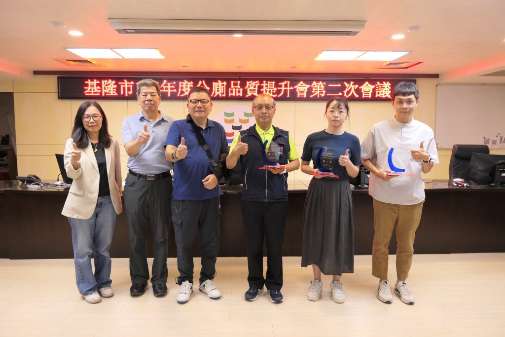 基隆市政府舉辦一一四年基隆市考評績優公廁表揚活動,考評前三名的績優公廁依序為台灣港務股份有限公司基隆港務分公司、基隆市警察局及基隆市政府綜合發展處,由秘書長方定安頒發獎座以及一萬元、八千元與六千元等值禮券;活動中並由獲獎單位分享公廁維護管理經驗,讓現場所有公廁管理單都能觀摩學習,共同精進基隆市的公廁品質。