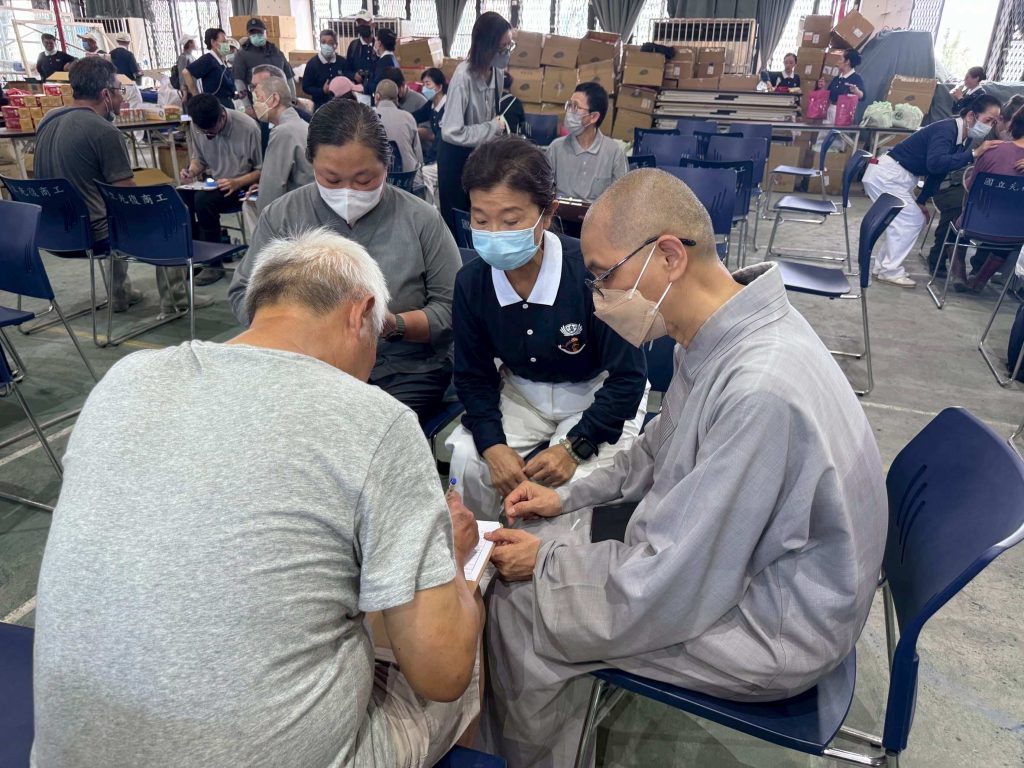 中秋連續假期,慈濟基金會四日發動精舍師父、行政職工、社工、志工及發放工作人員大約兩百多人,在光復商工活動中心進行災民慰助金及中秋祝福禮發放作業。
