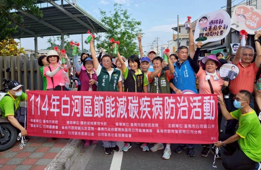 白河區公所四日舉辦「一一四年節能減碳疾病防治健走活動」,參與者由玉豐國小出發,沿途串聯木棉花道、九曲橋、枋子林廣濟宮,再折返九曲橋回到玉豐國小,全程約四點六公里。沿途風景優美、空氣清新,不僅展現白河的人文景致與自然風貌,也讓參與者在健走中體驗運動與生態之美。