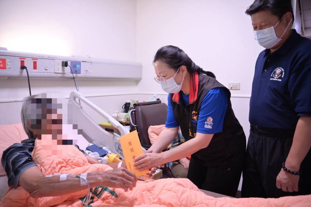 徐榛蔚在立委傅崐萁、衛生局長朱家祥等人陪同下,逐一慰問住院傷患並致贈慰問金。
