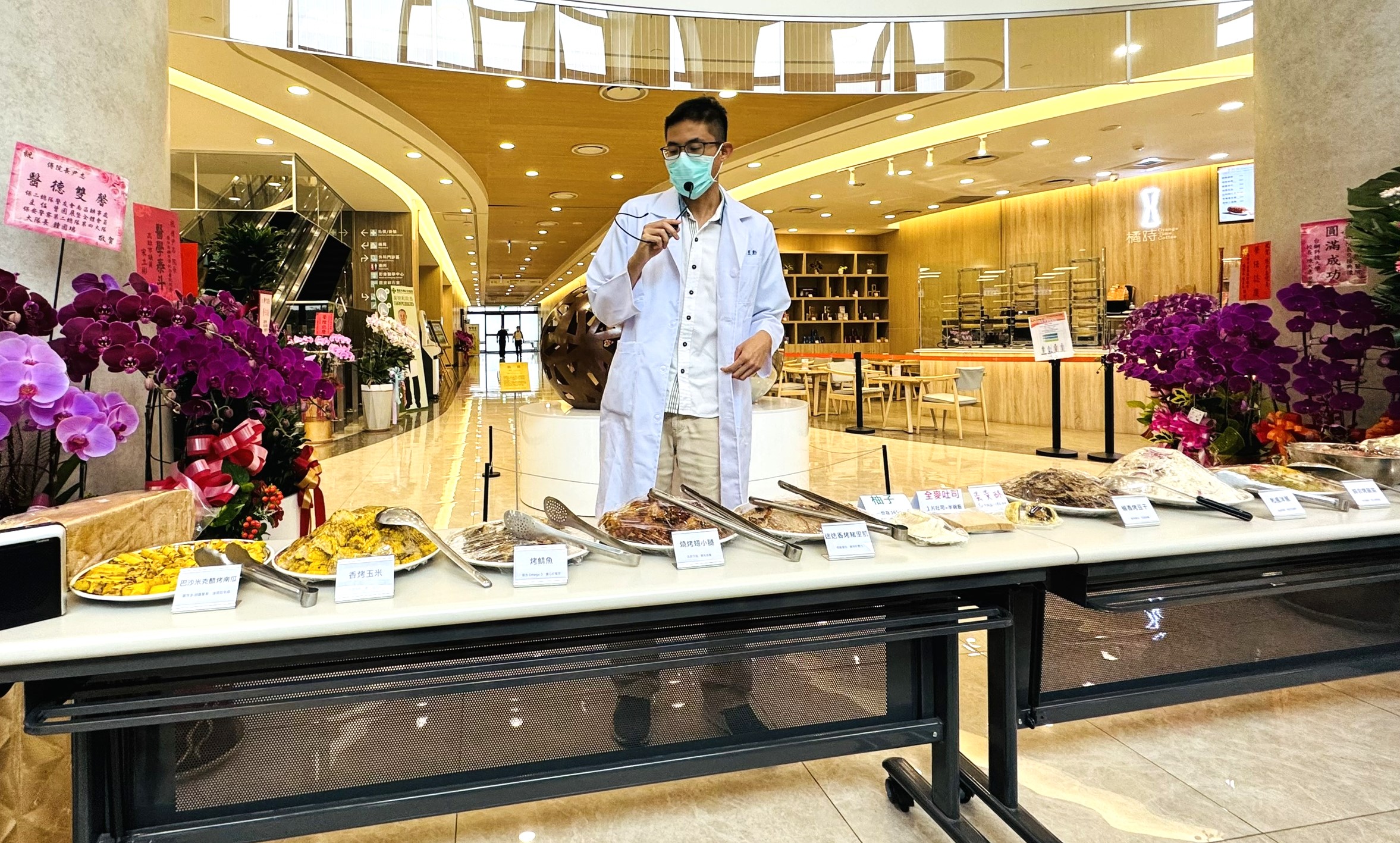 中秋節將至,高雄秀傳紀念醫院舉辦「中秋飲食指南」講座,由營養師準備超過20道健康料理buffet,供內分泌新陳代謝科陳昱勳醫師現場衛教,讓就醫民眾直呼「醫師和營養師現場教學,真用心!」陳昱勳醫師強調,享受烤肉應景美食時,每餐盡量以七分飽為原則,別讓開心過節變成身體負擔。