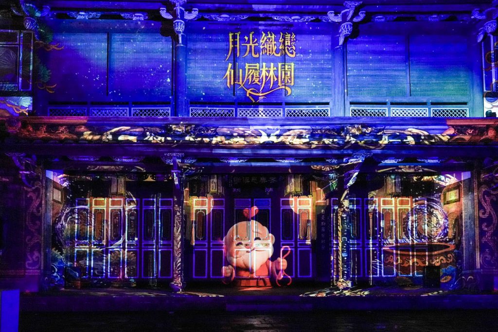 新北市國定古蹟林本源園邸(林家花園)今年秋冬以「月光織戀」為主題,擴大結合霞海城隍廟月老駐駕祈福與古蹟光雕藝術四日晚揭幕,活動連續近三個月,其中夜間登場的「仙履林園」光雕嘉年華,五日晚至十二月廿七日每週六晚間演出三場光雕秀,帶領參觀民眾沉浸於五幕式光影劇情。