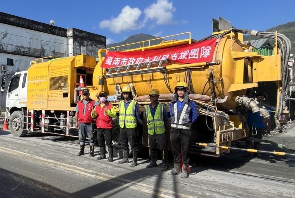 為幫助花蓮光復鄉泥石流災區復原,台南市長黃偉哲指派市府水利局出動高壓吸泥車投入下水道及側溝淤泥清除等工作,以機具清理人力無法挖除的管道內汙泥,加速復原災區街道排水功能。支援人力機具於十月五日完成階段性任務後,光榮返鄉。