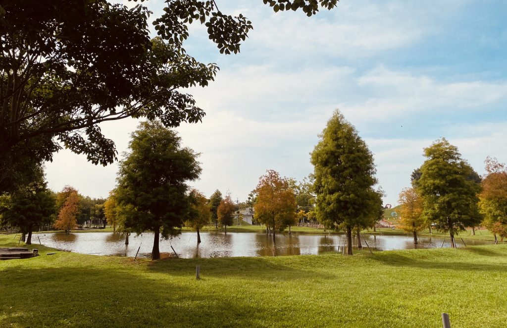 台中后里環保公園落羽松林逐漸轉色,由綠轉黃再轉橘紅的層次變化,讓秋日景致更顯浪漫多樣,再加上大片黃波斯菊正值盛放,金黃與橘紅交織如畫,構築出浪漫的「雙重秋色」,成為攝影愛好者與散步民眾的熱門取景地。