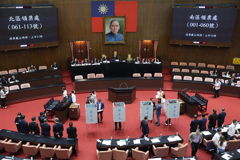 國民黨立院黨團日前臨時撤案讓明年度中央政府總預算案付委,對審計長人事案也沒有杯葛。圖為立法院會進行審計長人事同意權案記名投票表決。(中央社)