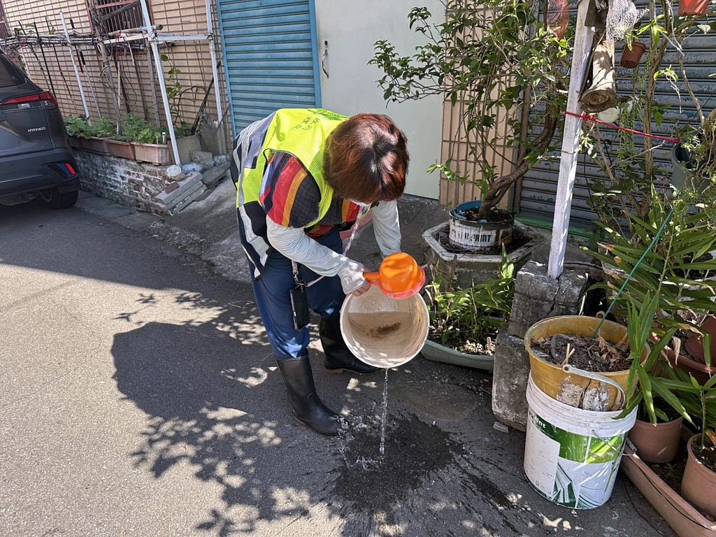 環保局長顏己喨六日指出,登革熱是經由病媒蚊叮咬傳染,而病媒蚊最常孳生於花盆底盤、廢棄瓶罐、飲料杯與便當盒等積水容器。環保局因此在確診個案所在里及周邊相鄰里別啟動第二道防線,訂定「區里環保志工執行登革熱防治孳清動員計畫」,自十月二日起至十月底,每兩日動員志工巡檢巷弄,落實「巡、倒、清、刷」四步驟,徹底清除病媒蚊孳生源。