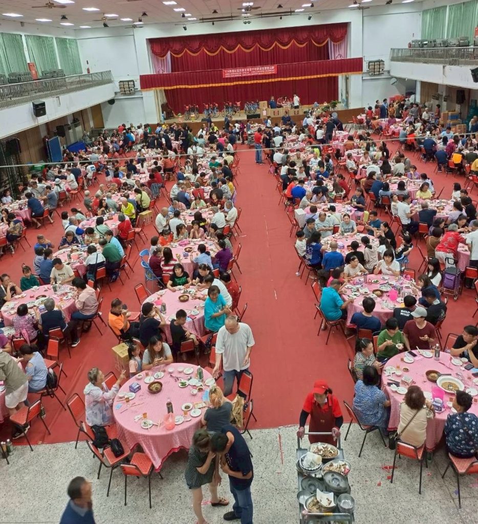 學甲區仁得社區發展協會歡慶成立三十週年,在東陽國小活動中心舉辦慶祝餐會暨一年一度中秋節活動,現場席開七十三桌,有摸彩品助興,氣氛溫馨熱鬧。