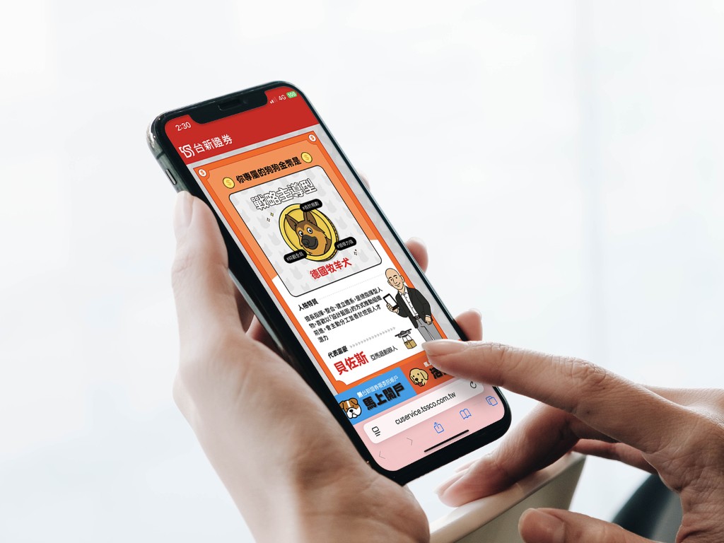另外,根據中央銀行統計,去年國人整體海外旅遊花費超過200億美元,創歷史次高紀錄,顯示出國旅遊已經是每年的必要支出。台新證券瞄準國人對於複委託、海外旅遊的需求,推出一檔有趣的活動,即日起到11月30日止,只要前往台新證券官網測試你與哪位知名富豪擁有相同特質,完成測驗即可獲得專屬狗狗金幣插畫,解鎖指定任務還有機會抽中美國、日本雙人行機票抵用金。