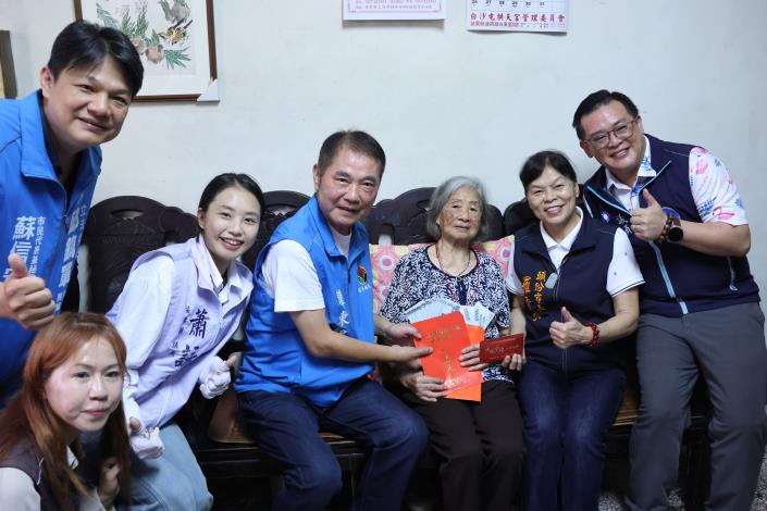 每位老寶貝都神采奕奕等著縣長的到來,六人健康狀況良好,能與縣長簡單應答互動,其中,吳長妹日前跌倒受傷,縣長即刻給予關懷並指示社會處協助廁所加裝無障礙扶手,讓長輩在家中安全行動;江黃銀妹則能清楚點鈔,手指靈活,大家開心數鈔票;縣長緊握著每位長輩的雙手傳遞溫暖,希望長輩們時時保持愉悅的心情,健康又長壽。