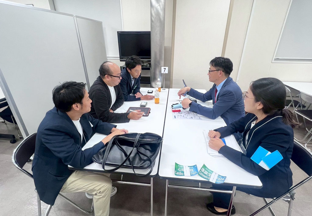 久方生技總經理湯孝威博士表示,此次參展達成三大目標:其一,已與兩家日本全國性醫材通路商及一家動物醫材通路商展開合作洽談,並獲日本知名通路商肯定,認為產品具備挑戰國際大廠 Olympus 的潛力;其二,在 B2B 戰略合作上,與 Terumo(テルモ株式会社)進行深度交流,展示公司具備符合國際品質與法規標準的一站式 CDMO 開發服務;其三,深化技術合作信任,憑藉湯博士過去研發血管縫合器、獲 Terumo 收購的經驗,強化雙方合作基礎。