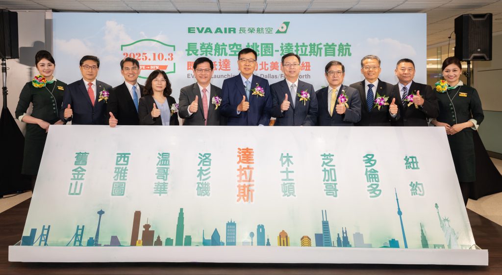 長榮航空睽違9年再度開闢北美新航點首航桃園-達拉斯航線,由長榮航空林寶水董事長、孫嘉明總經理邀請外交部林佳龍部長、交通部林國顯常務次長、民航局何淑萍局長、桃園機場公司楊偉甫董事長以及交通部航政司韓振華司長共同主持首航儀式,在現場200多位搭乘首航班旅客的見證下,長榮航空正式成為亞洲唯一同時經營德州休士頓及達拉斯兩大航點的航空公司,也迎來長榮航空北美航網佈局的全新篇章。
