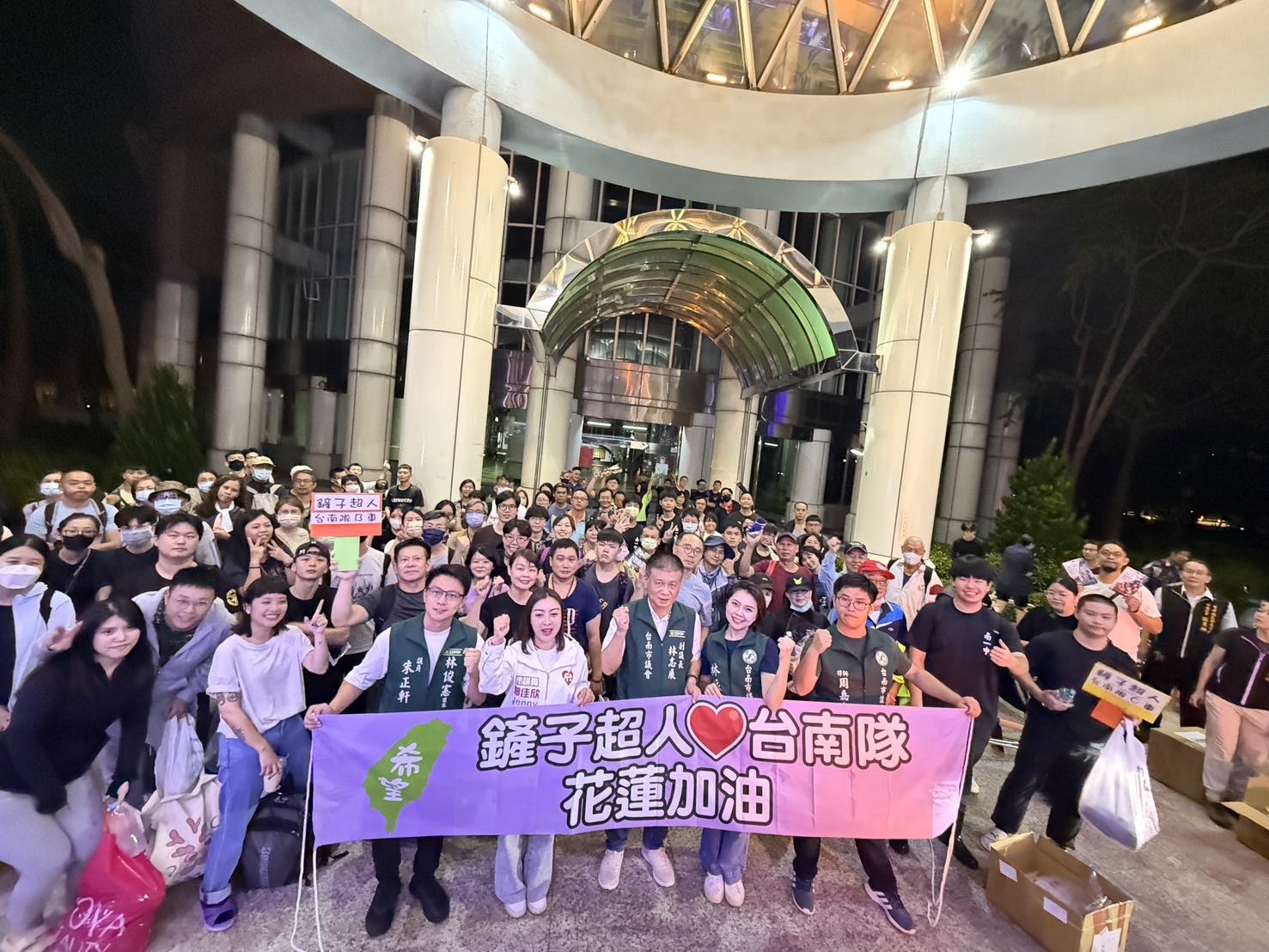 花蓮有難,台南救援。台南七位議員日前號召「鏟子超人」前往花蓮,議員余柷青六日也安排運水車前往花蓮災區,議員蔡麗青日前號召熱心商家在災區發送雞排。七日雞排超人再度現身,還加碼薯條,讓志工和受災戶直說足感心。