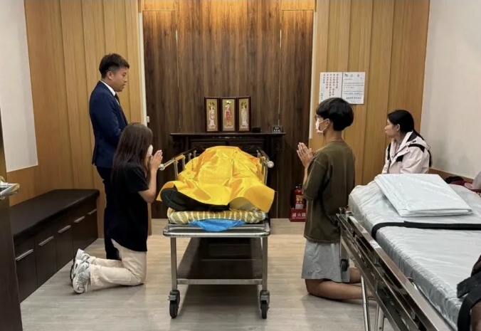 家住桃園市的48歲挖土機行老闆林鴻森,於中秋節病逝,家屬悲痛不已。(禮儀公司業者林奕華提供)
